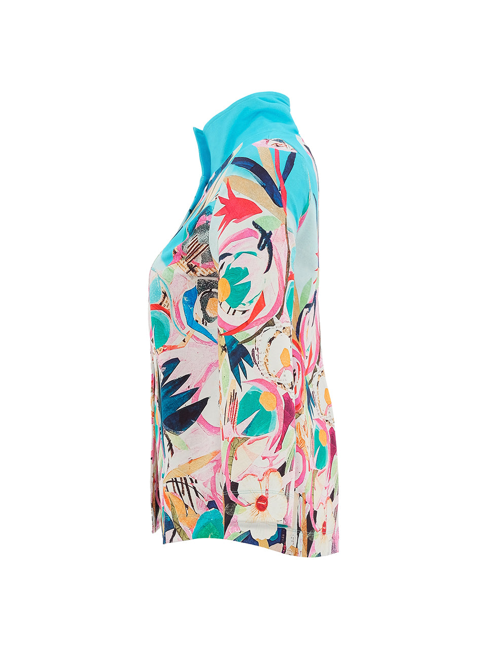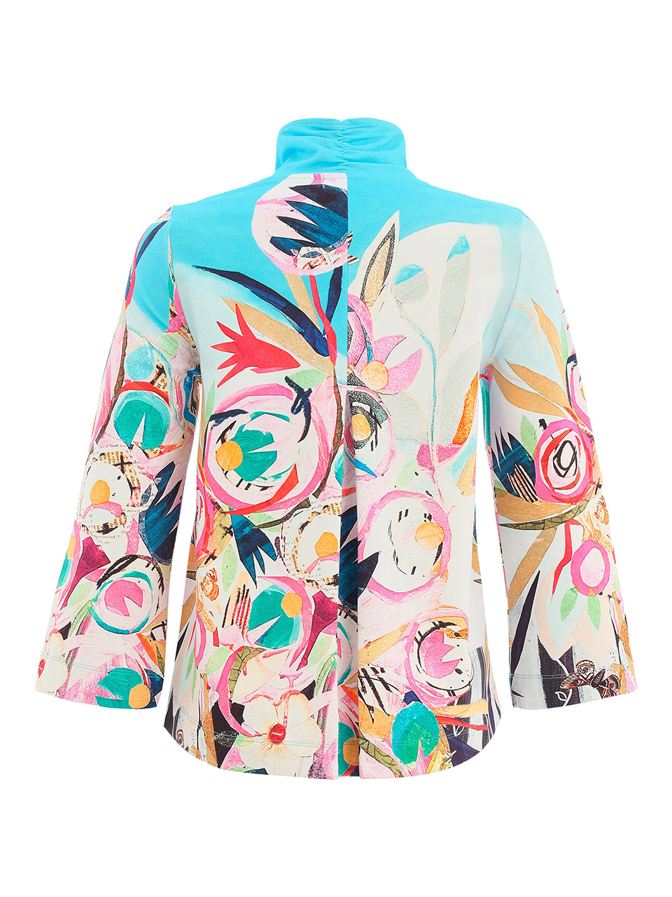 Este casaco alia um corte elegante e confortável a uma composição artística rica em cor e movimento. A base clara realça a estampa vibrante, enquanto o tecido com elasticidade garante um ajuste confortável e um cair fluido, ideal para uso diário ou ocasiões especiais.